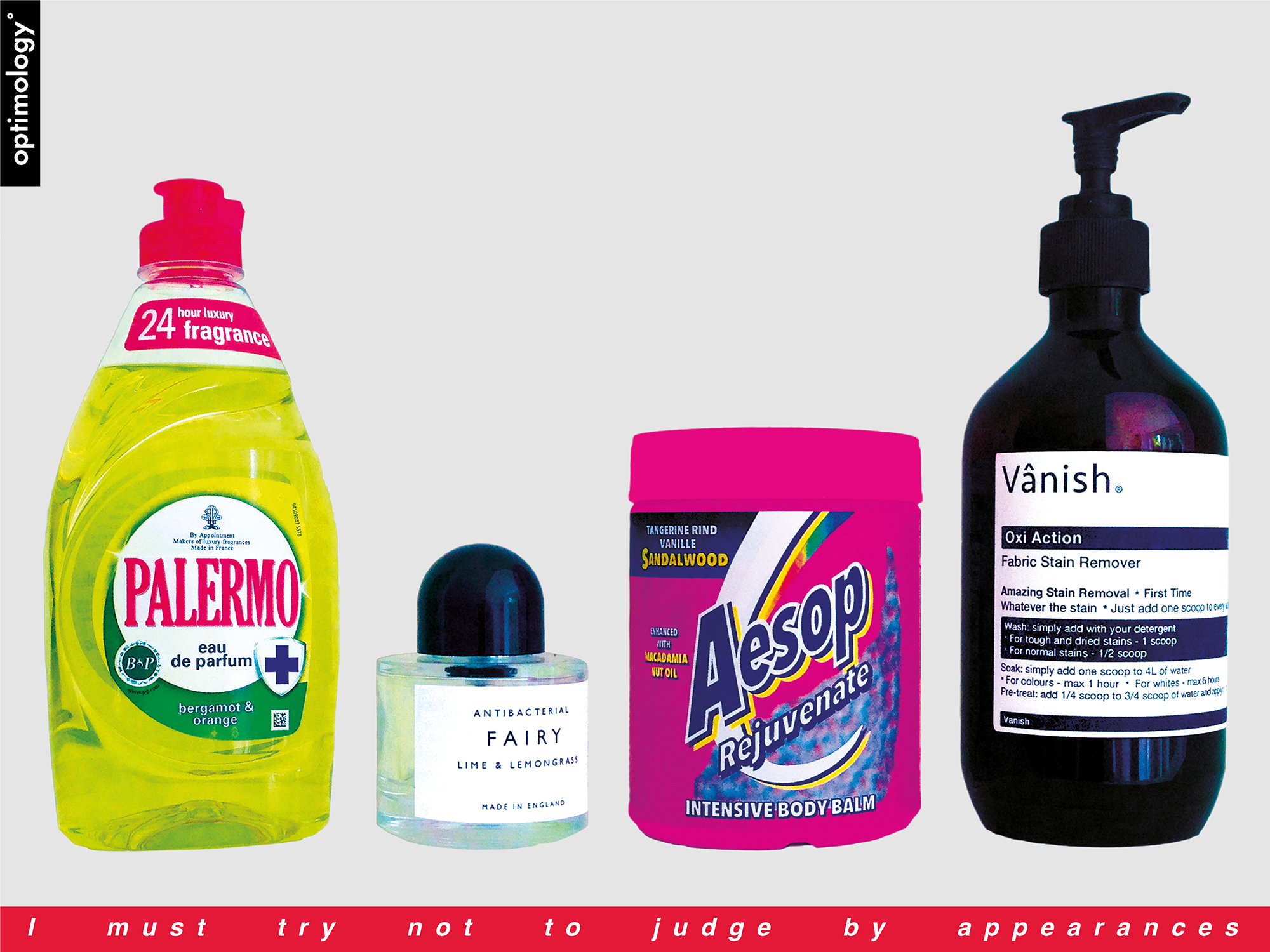The posters I Must Try Not To Judge by Appearances and Why Do I Feel So Ambivalent About Things rely on the reader having a sense of what the poster is appropriating. In the former the packaging has been swapped between household cleaning liquids and luxury perfume and body balm. While in the latter the table now lays out the elements of our everyday lives, from IRL on the left to our online world on the right.